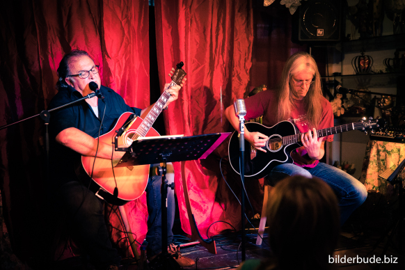 Unser Gitarrenlehrer Michael Scharr mit seinem Partner Fide Wolter sind „Buddy Booze“. Sie machen Musik für Herz und Bauch. Die tiefe Seele des Blues, der mitreißende Rhythmus des Rock’ n Roll und die bezaubernde Poesie des französischen Chansons sind Zutaten zu ihrem musikalischen Menü. Fide Wolter und Michael Scharr verstehen es, die musikalischen Lebensgeister in jedem Herzen und jedem Bauch zu wecken. Buddy Booze ist pur, also „unplugged“, wie man heute sagt.