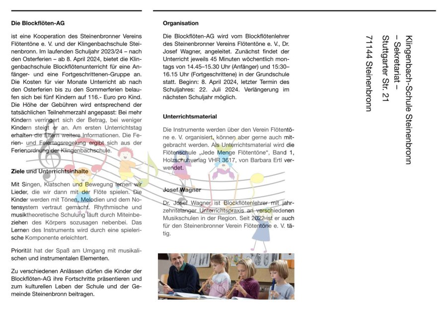 Am ersten Unterrichtstag, 8. April 2024, erhalten die Eltern weitere Informationen.